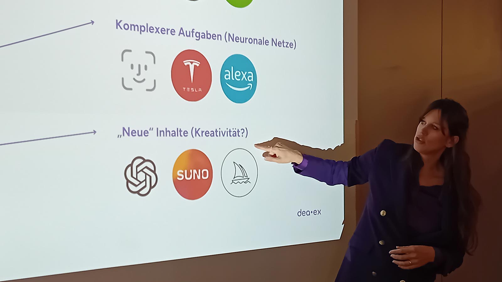 Der Vortrag war in zwei Teile gegliedert: eine Stunde Input und anschließend eine 30-minütige Diskussion. Eine Stunde ist nicht viel Zeit – deshalb musste ein bisschen von allem Platz finden: von der Frage, warum Künstliche Intelligenz mehr ist als nur ChatGPT, bis hin zu positiven Einsatzgebieten in der Arbeitswelt.